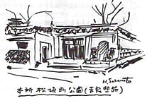 吉良邸跡は、大通りと小道の一角にあった。白壁に囲まれて、本所松坂町公園と書かれている。この白壁は、高貴な人の住む海鼠(なまこ)壁と言われ、元禄の頃を今に伝えている。旧吉良邸は、東西132m、南北62mで8、400m2(2、540坪)と広大なものであった。その中に、母屋が388坪、長屋が426坪あった。現在の公園は、29.5坪で、当時の86分の1に過ぎない。
